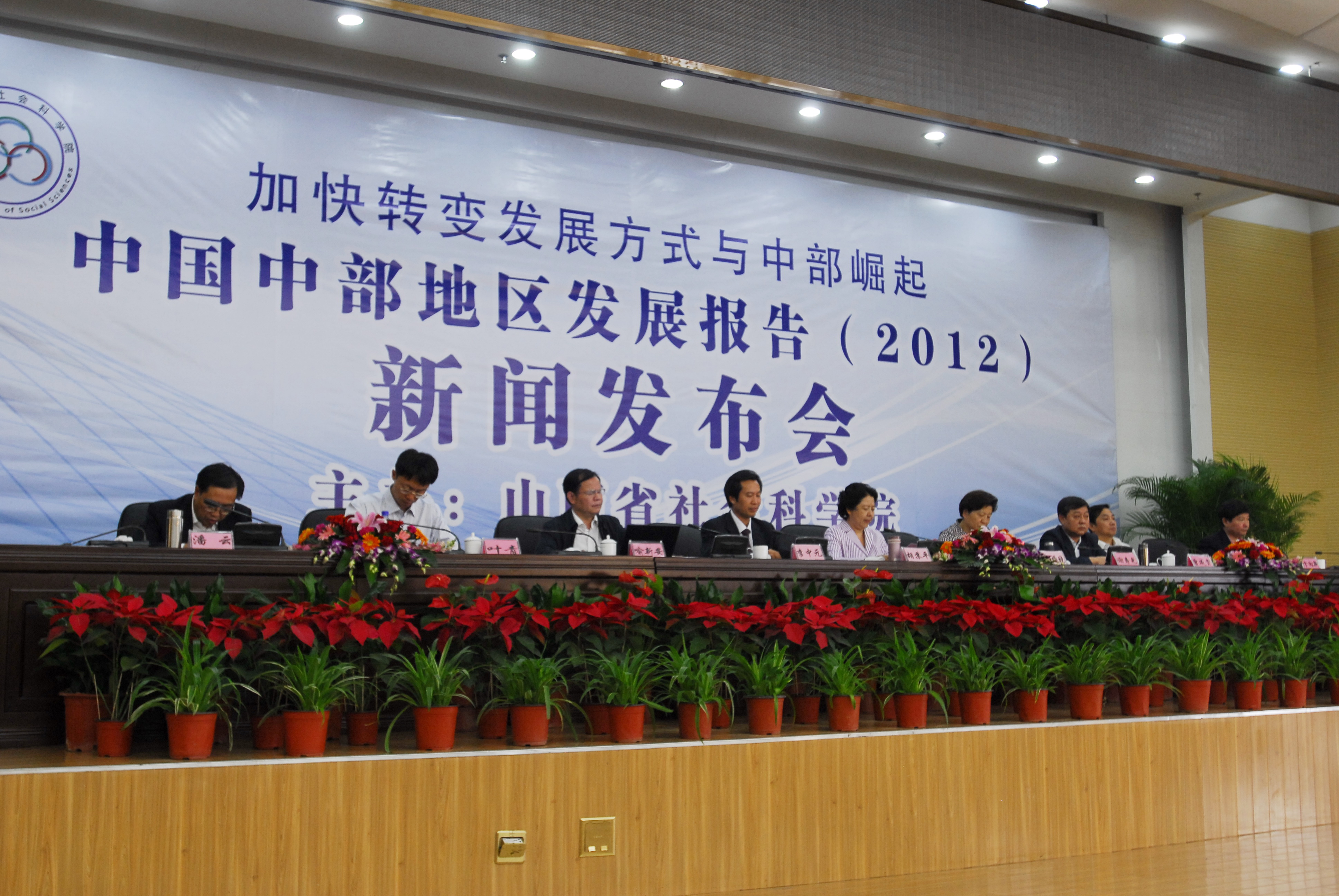 9月23日,由中部六省社科院主办、山西省社科院承办的中部社科院长论坛暨《中国中部地区发展报告(2012)》新闻发布会在太原召开。山西省委常委、宣传部长胡苏平,山西省人大常委会副主任安焕晓和山西省副省长张平出席会议并讲话,来自中部六省和北京、山东、广西、吉林等省(市、区)社科院以及社科文献出版社和相关媒体的50多位专家学者参加了此次会议。我院院长喻新安出席会议,并作了题为《中部崛起五年回顾与展望》的主题演讲,还共同主持了中部社科院长论坛。