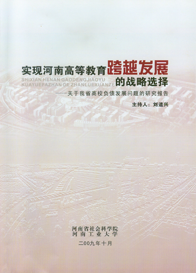 过去十年,河南高等教育实现了跨越式发展,其中一条根本性的做法和经验,就是省委、省政府支持高等学校从银行贷款进行基本建设。但是由于思想认识、理论研究、制度创新和政策制定等方面发展相对滞后,高校负债过重已成为当前我省高等教育发展的一个突出矛盾。更严重的问题是存在于思想认识上的分歧和误区,正在影响我省高等教育错过新一轮更大的发展机遇。本研究报告以科学发展观为指导,立足新形势和新发展的要求,对河南省高校负债问题进行了全面系统地分析和研究,提出了一系列新认识、新观点、新建议,对于进一步加快河南高等教育发展在理论上和实践上都具有重要意义。